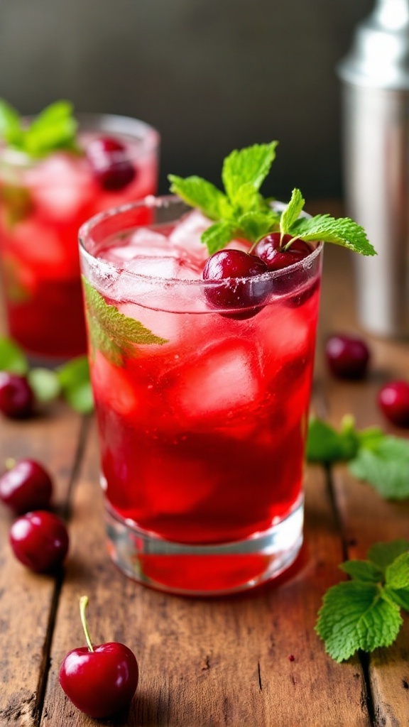 The garnishes also serve a practical purpose, inviting you to savor the minty essence as you sip. Together, the cherries and mint transform the cocktail from a simple drink into a presentation worthy of any gathering.