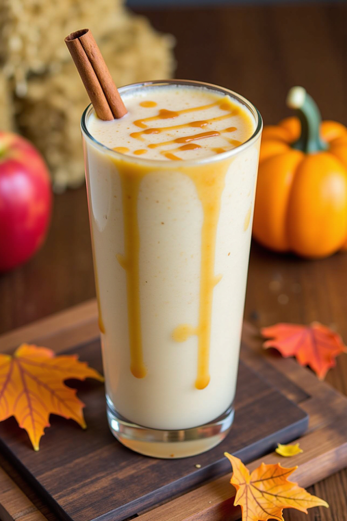 - Pour the smoothie into glasses. If desired, top with whipped cream, an extra drizzle of caramel, and a dusting of cinnamon.
