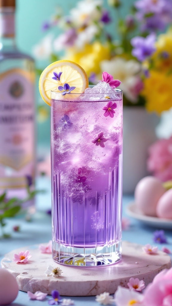 This cocktail not only tastes delightful but also evokes the joy of the season, making it a memorable addition to your gatherings. The pastel-colored table setting, enhanced by spring flowers, further elevates the atmosphere, inviting guests to indulge in the beauty of the moment.