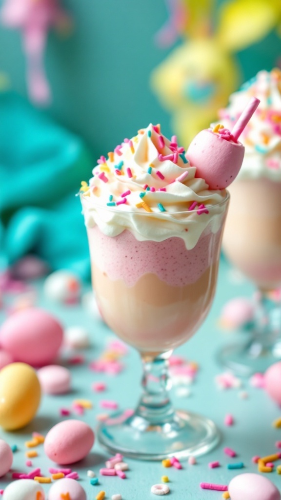 The visual appeal of this cocktail is elevated by playful garnishes. Topping it with whipped cream and colorful sprinkles transforms the drink into a cute cocktail that’s perfect for Easter festivities.