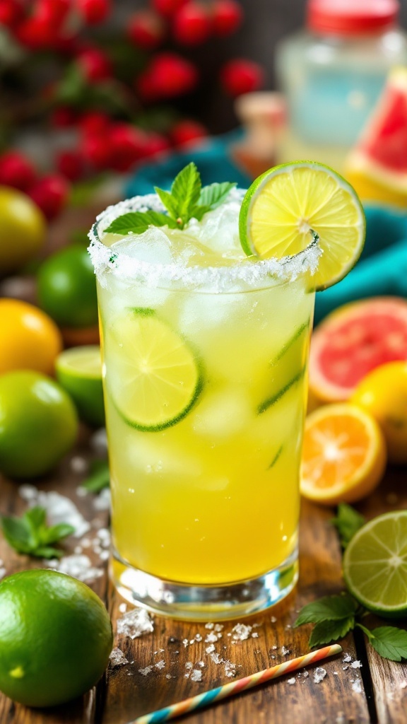 Surrounding your margarita with fresh limes and colorful cocktail accessories not only enhances the visual appeal but also invites a festive atmosphere. Placing it on a rustic wooden table adds charm, making it the focal point of any sunny gathering.