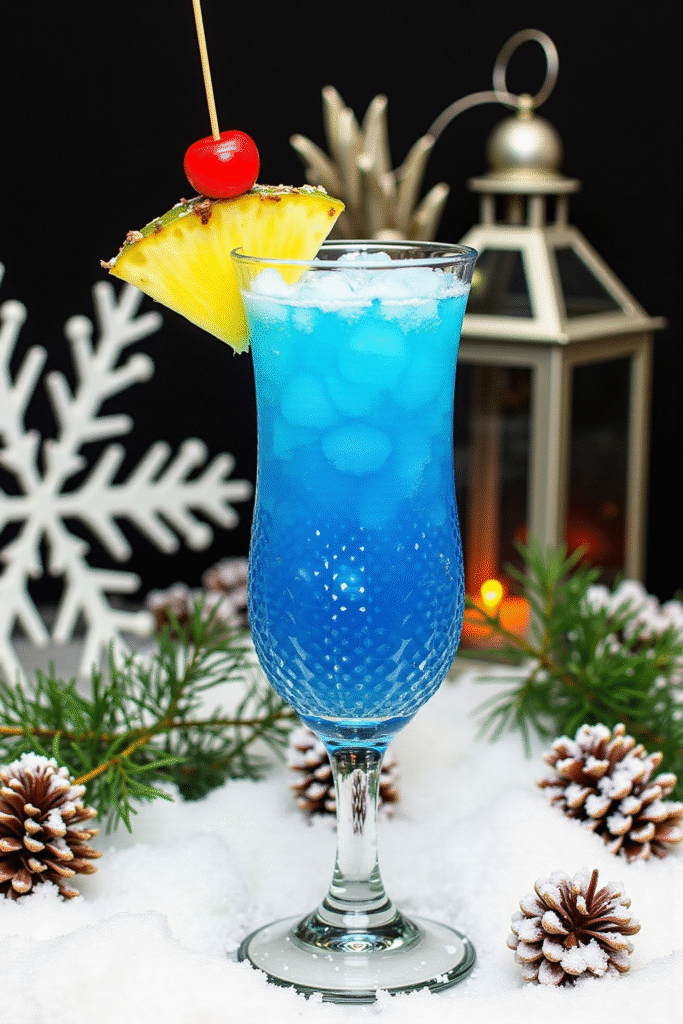 This cocktail is more than just a treat for the eyes! It combines tropical coconut flavors with the sweet tang of pineapple and a sophisticated vodka finish. Its striking blue color, courtesy of blue curaçao, adds a playful and magical touch to your party table, while the frosted rims bring a festive chill to every toast.