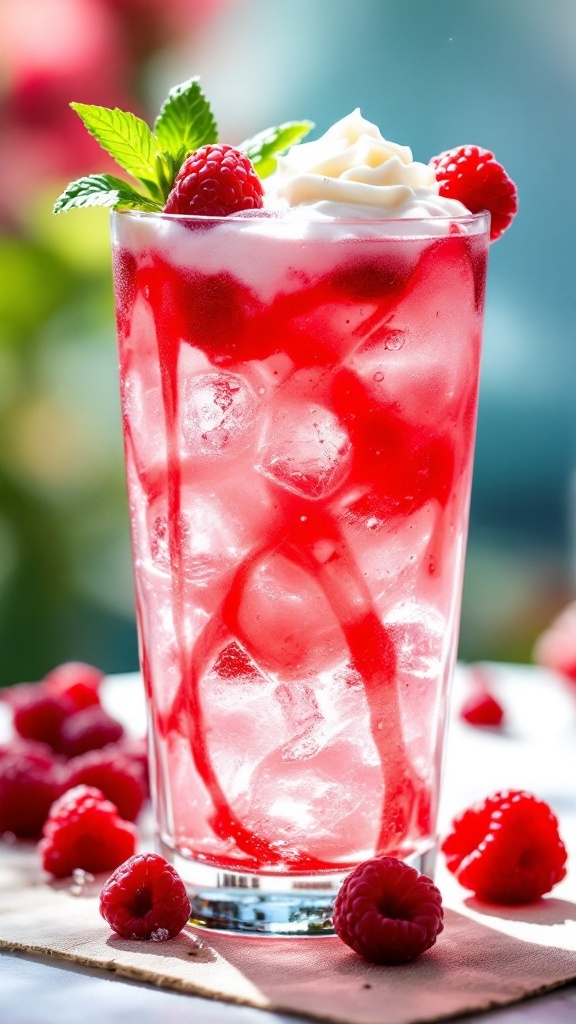 The visual appeal of this drink is striking. The bright red raspberry syrup swirls beautifully with sparkling water, creating a mosaic of colors that spark joy. When topped with a splash of cream, the drink takes on a creamy texture, inviting you to indulge in its delightful flavors.