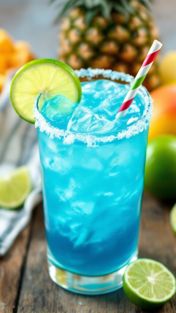 This drink is not just a feast for the eyes; it’s also a delightful blend of flavors that will keep you cool on a sunny day. The sweetness of blue Curacao paired with fresh lime juice makes this margarita irresistible.
