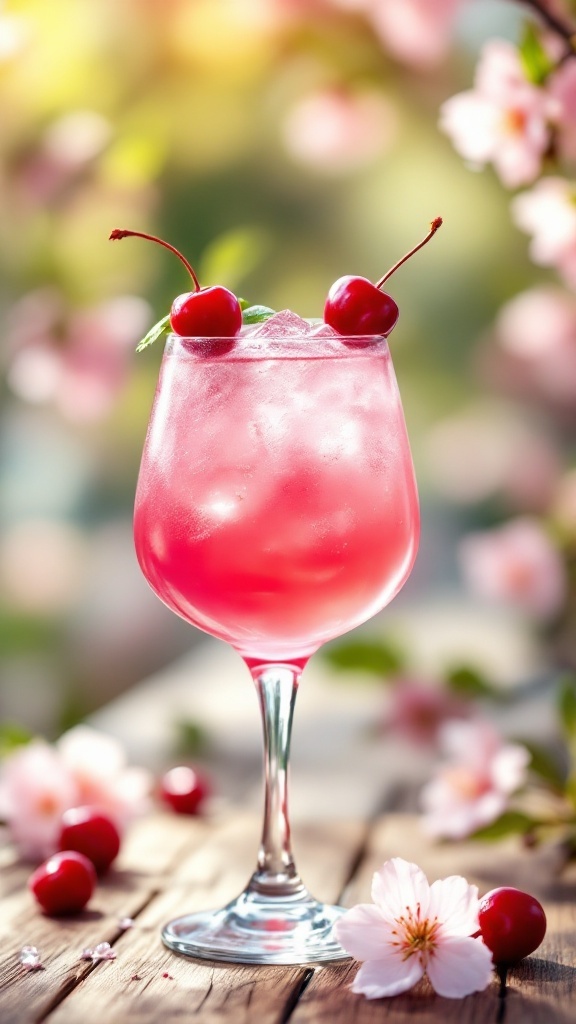 Garnishing with fresh cherries not only adds visual appeal but also enhances the flavor experience. Consider scattering delicate cherry blossoms around the drink to further accentuate the spring theme. Serve this cocktail outdoors on a sunny day to fully appreciate its refreshing qualities.