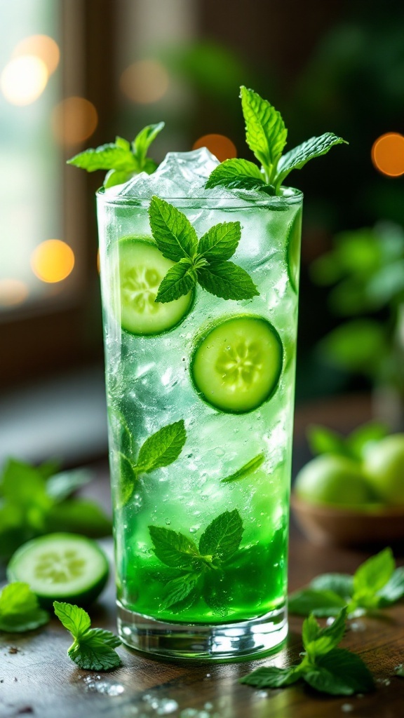 This refreshing cocktail isn’t just a treat for the taste buds; it also offers health benefits. Cucumbers are low in calories and high in water content, making them an excellent ingredient for hydration. Fresh mint aids digestion and adds a unique flavor that enhances the overall drinking experience.