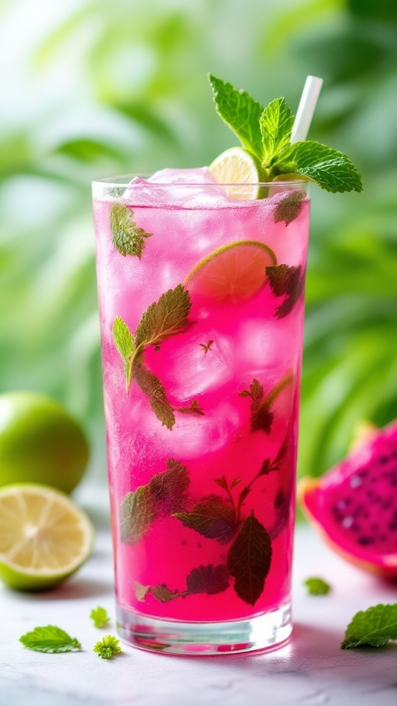 If you’re into Dragonfruit Recipes, this Fruit Mojito will definitely capture your heart. It’s a crowd-pleaser that showcases the unique taste of dragon fruit, making it a standout among other mocktail ideas. This drink is not only a feast for the eyes but also a refreshing treat that is perfect for anyone looking for a non-alcoholic option. Whether you’re serving it at a party or enjoying it solo, this Dragon Fruit Drink will leave you feeling revitalized and ready for more.