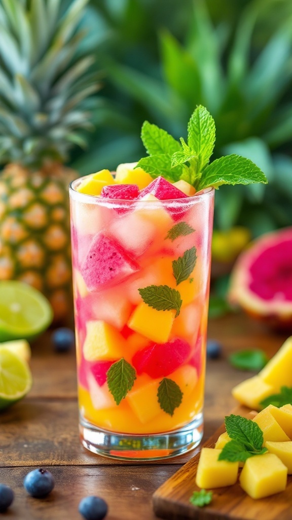 Crafting this cocktail requires only a handful of fresh ingredients that work in harmony. Fresh pineapple chunks and cubed dragonfruit are the stars, providing that tropical flair.