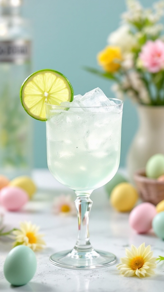 When preparing your cocktail, consider your backdrop. Setting the drink against a festive arrangement of pastel-colored eggs and blooming flowers enhances the cheerful atmosphere, making it an inviting option for your Easter Day festivities.