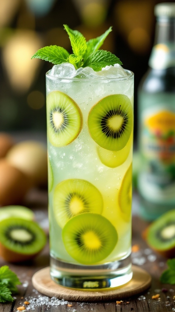 Once you’ve prepared your Kiwi Spritz, take a moment to appreciate its festive presentation. The vibrant green kiwi slices alongside the bubbly club soda create an inviting visual that enhances the drinking experience.