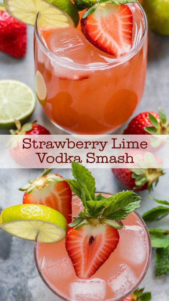 - Garnish and Serve: Garnish with fresh mint leaves and additional strawberry slices. Enjoy your refreshing Strawberry Lime Vodka Smash!
