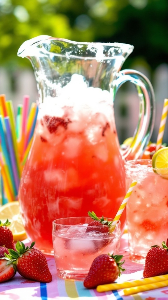 Creating an inviting outdoor setting enhances the enjoyment of your strawberry margaritas. Picture colorful straws, a festive tablecloth, and the sun shining down as friends sip on these refreshing drinks.