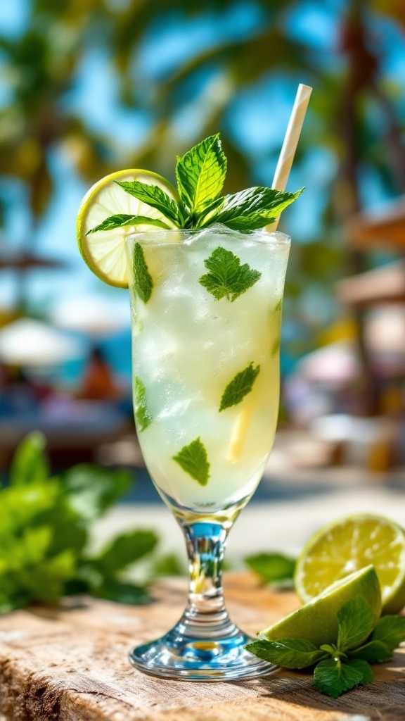 Imagine enjoying this cocktail while surrounded by palm trees and a sunny outdoor backdrop. The combination of light flavors and hydrating ingredients transports you to a beach-like setting, even if you’re just in your backyard.