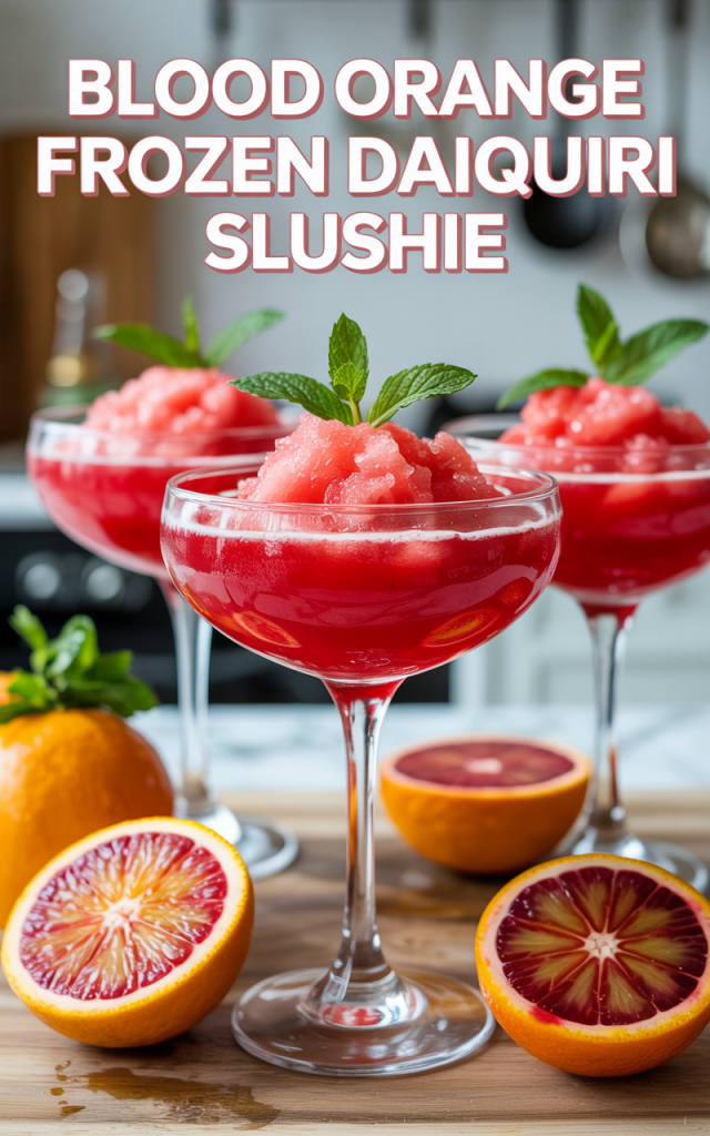 The Citrus Cooldown: Blood Orange Daiquiri Slushie is the ultimate answer to summer’s swelter—tangy, refreshingly icy, and vibrantly colored. This cocktail combines the intense citrusy-sweetness of blood oranges with the classic punch of a daiquiri, all blended to a frosty, slushie consistency that’s as beautiful as it is delicious.