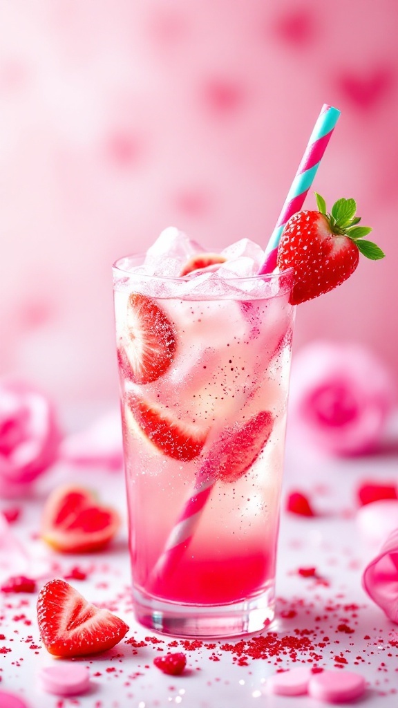 With the backdrop adorned in soft pink and red decorations, this mocktail becomes a stunning centerpiece. It’s a perfect fit for any Valentines Party Drinks Nonalcoholic or as part of a cozy gathering with loved ones.