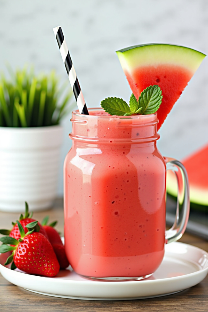 What makes this watermelon smoothie a standout is its simplicity—minimal ingredients, minimal prep, and maximum refreshment. The blend of ripe watermelon, cooling mint, and tangy citrus creates a flavor explosion that’s both revitalizing and delicious. It’s naturally sweet, nutrient-rich, and perfect for customizing with your favorite mix-ins like strawberries or coconut water.