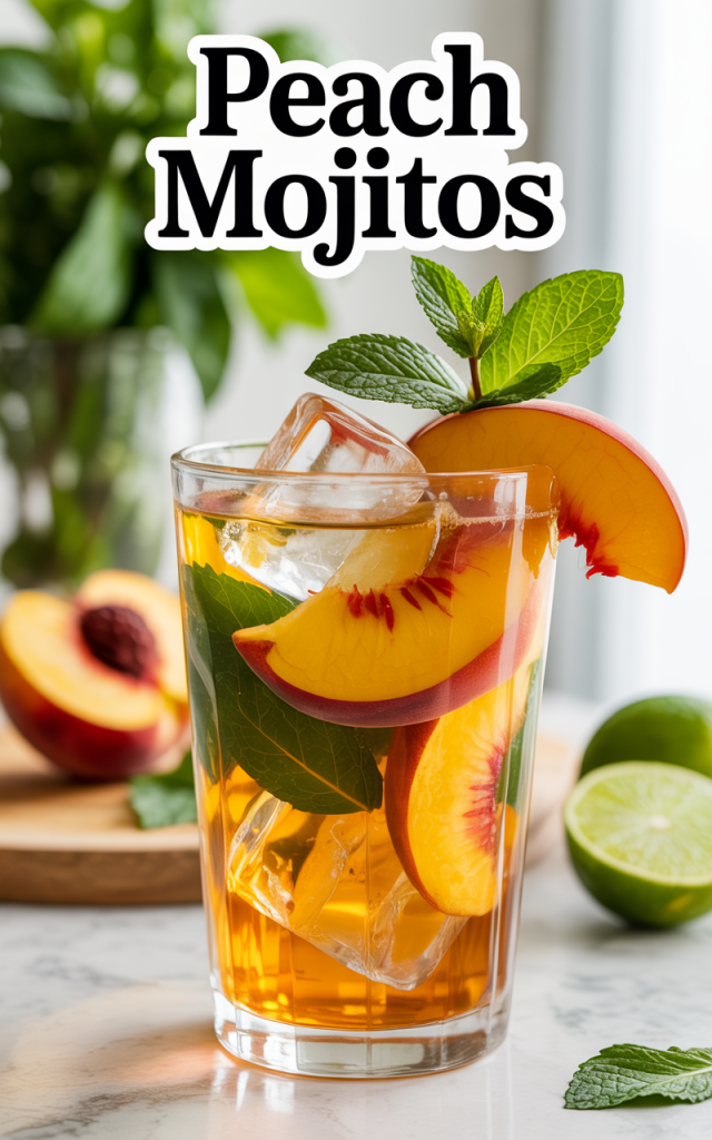 Peach Mojitos with Fresh Mint deliver a burst of summer flavor in every sip. Ripe peaches combine with cooling mint, tangy lime, and a splash of rum to create an irresistibly refreshing cocktail that’s both vibrant and perfectly balanced. It’s a stunning drink for entertaining, guaranteed to wow guests with its sunset-hued presentation and naturally sweet taste.