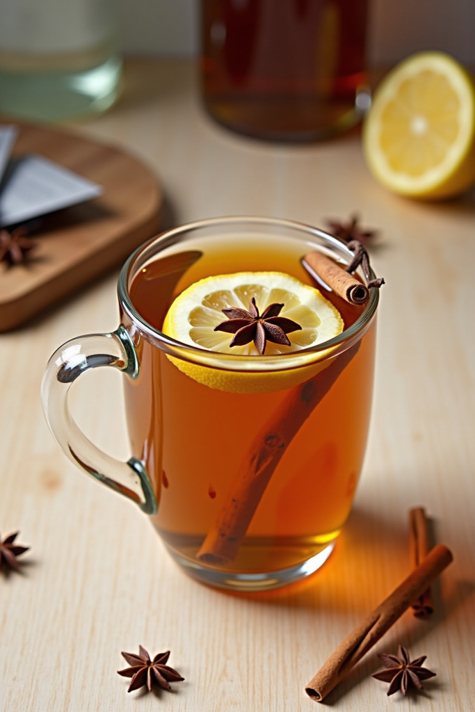 5. Garnish with a lemon wheel, star anise, or an extra cinnamon stick. Serve hot and enjoy!